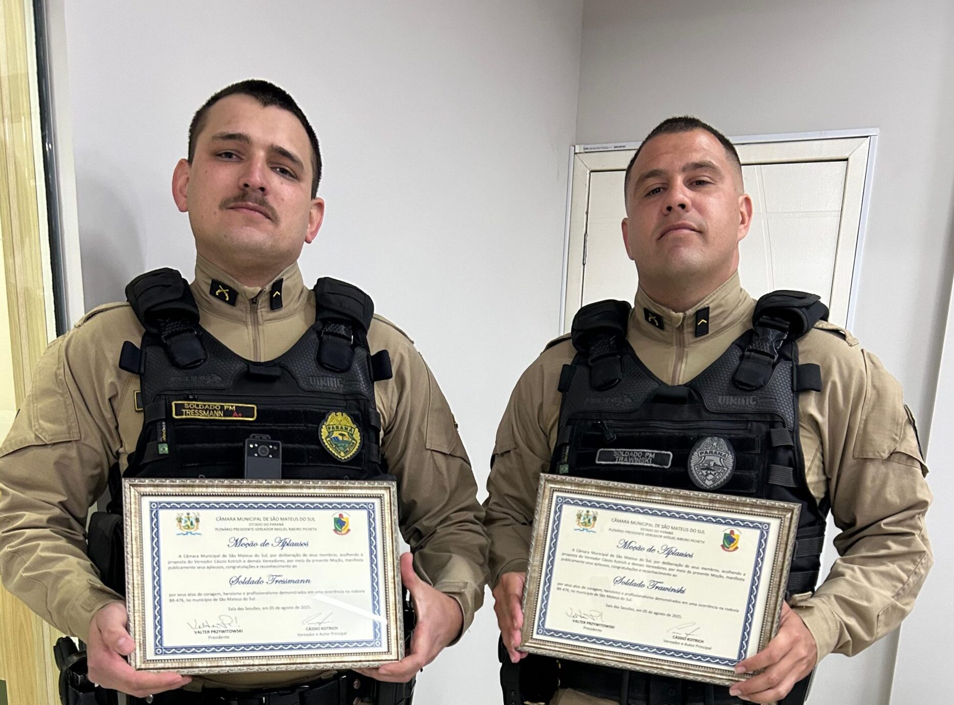 Policiais recebem Moção de Aplausos por ato heroico em acidente na BR-476 em São Mateus do Sul