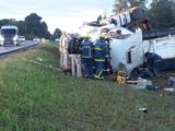 Carreta tomba na PR 151 após desviar de veículo que seguia na contramão em São Mateus do Sul